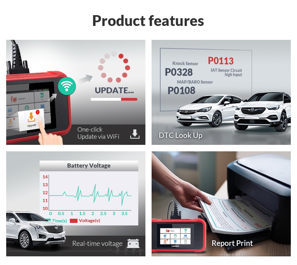 AutoVIN tehnoloogia tuvastab automaatselt sõiduki margi, mudeli ja aasta, lihtsustades diagnostikaprotsessi. Pärast diagnoosi lõpuleviimist genereerib seade automaatselt diagnostikaaruande, mida saab jagada e-posti teel või välja printida. Diagnostikaajalugu salvestatakse seadmesse hilisemaks ülevaatamiseks.